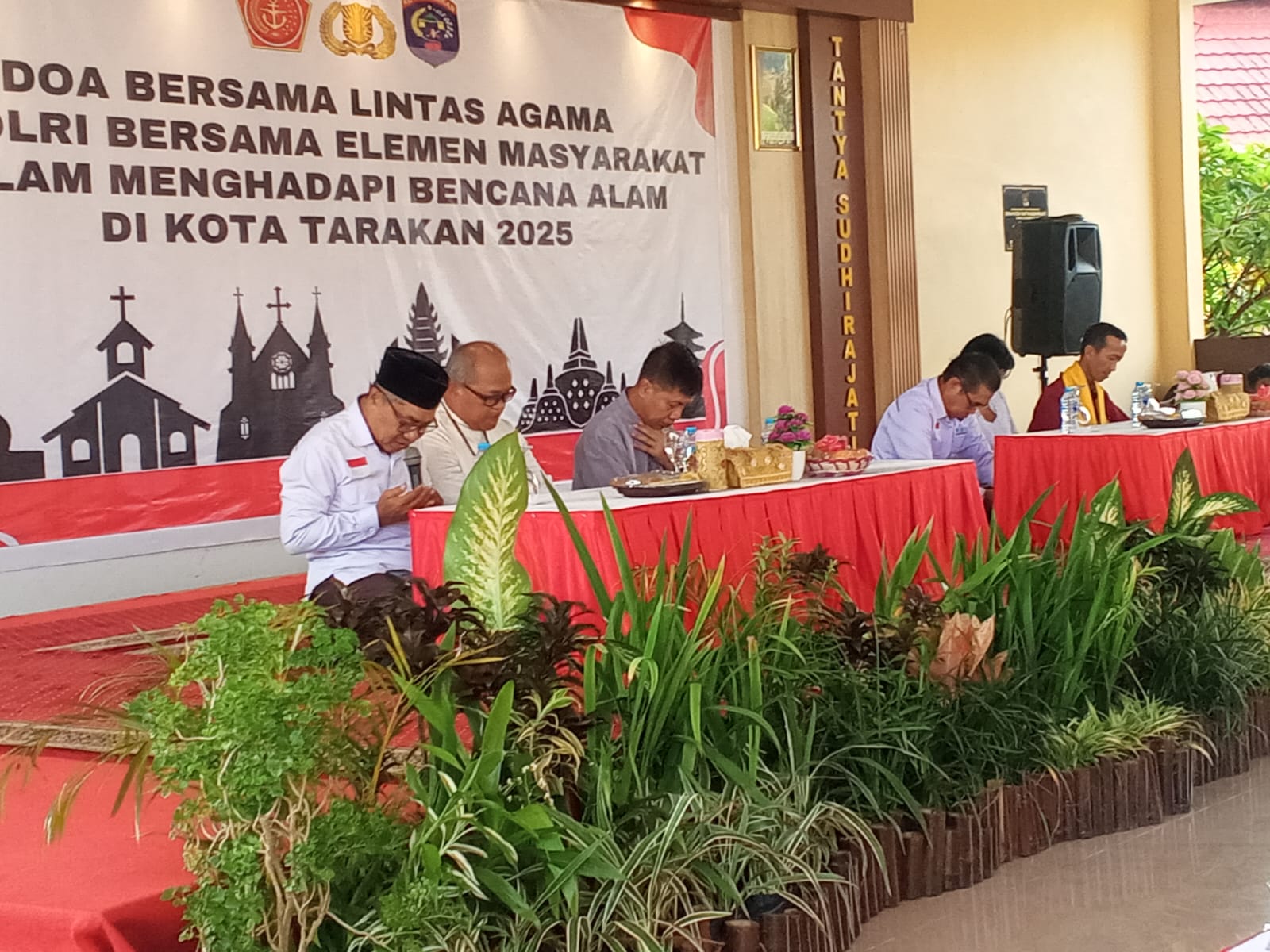 LTARAKAN – Dalam upaya memperkuat kebersamaan dan kesiapsiagaan menghadapi potensi bencana alam, Polres Tarakan menggelar kegiatan Doa Bersama Lintas Agama yang melibatkan TNI–Polri dan berbagai elemen masyarakat, Senin (10/11/2025) sore, di Aula Paten Polres Tarakan.