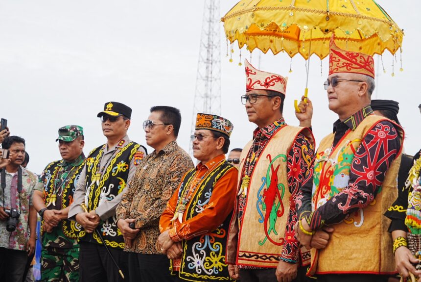 MALINAU – Wakil Gubernur (Wagub) Kalimantan Utara (Kaltara) Ingkong Ala, S.E., M.Si hadiri prosesi adat Timug Pensaluy oleh tetua adat Tidung untuk menyambut tamu mengawali rangkaian acara seremonial pembukaan Festival Budaya Irau Malinau ke-11 dan Hari Jadi ke-26 Kabupaten Malinau Tahun 2025, di Lapangan Padan Liu Burung (7/10) pagi.