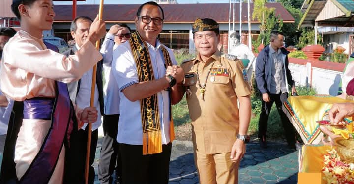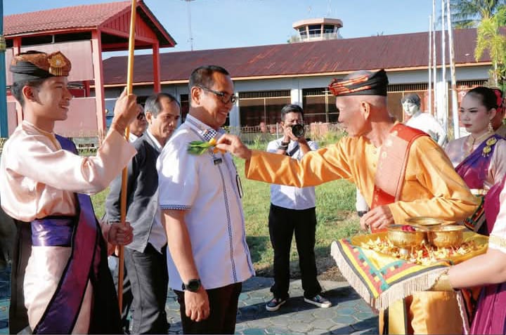 Sebagai bentuk penghormatan, rombongan BNPP RI disambut dengan prosesi adat tepung tawar dan pemberian syal khas Kaltara oleh Gubernur Zainal.