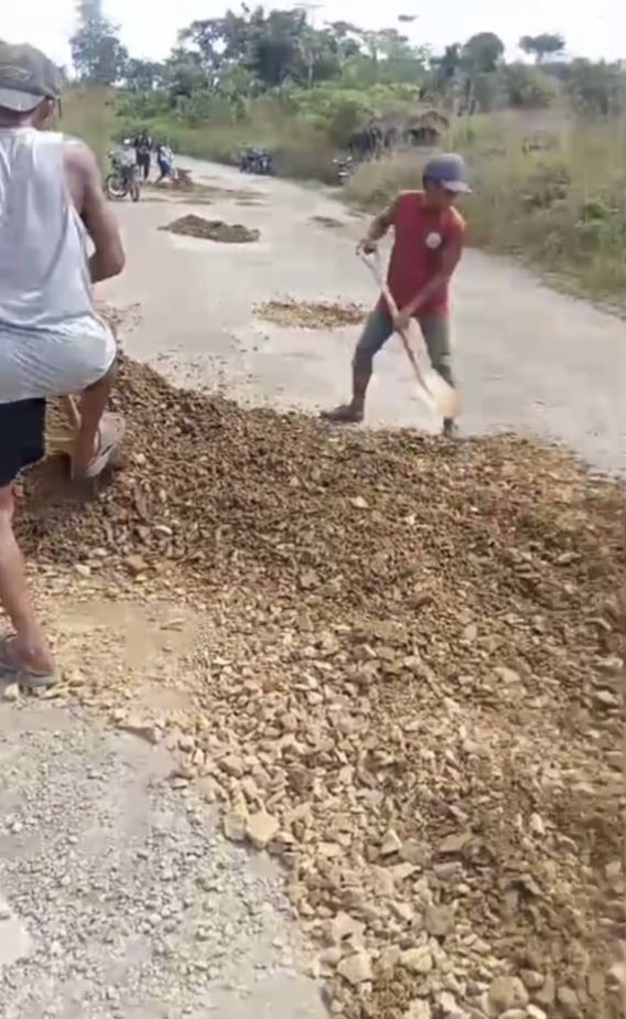 “Kami tidak bisa menunggu terus, Jadi kami gotong royong saja. Yang penting jalan bisa sedikit lebih aman untuk dilewati,” katanya.
