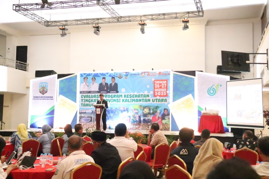TARAKAN – Staf Ahli Gubernur Bidang Hukum, Kesatuan Bangsa dan Pemerintahan Sekretariat Daerah Provinsi (Setdaprov) Kalimantan Utara (Kaltara), Robby Yuridi Hatman, S.Sos, MT., membuka kegiatan “Evaluasi Program Kesehatan Tingkat Provinsi Kalimantan Utara Tahun 2025”, digelar di Hotel Lotus Panaya, Rabu (26/11).