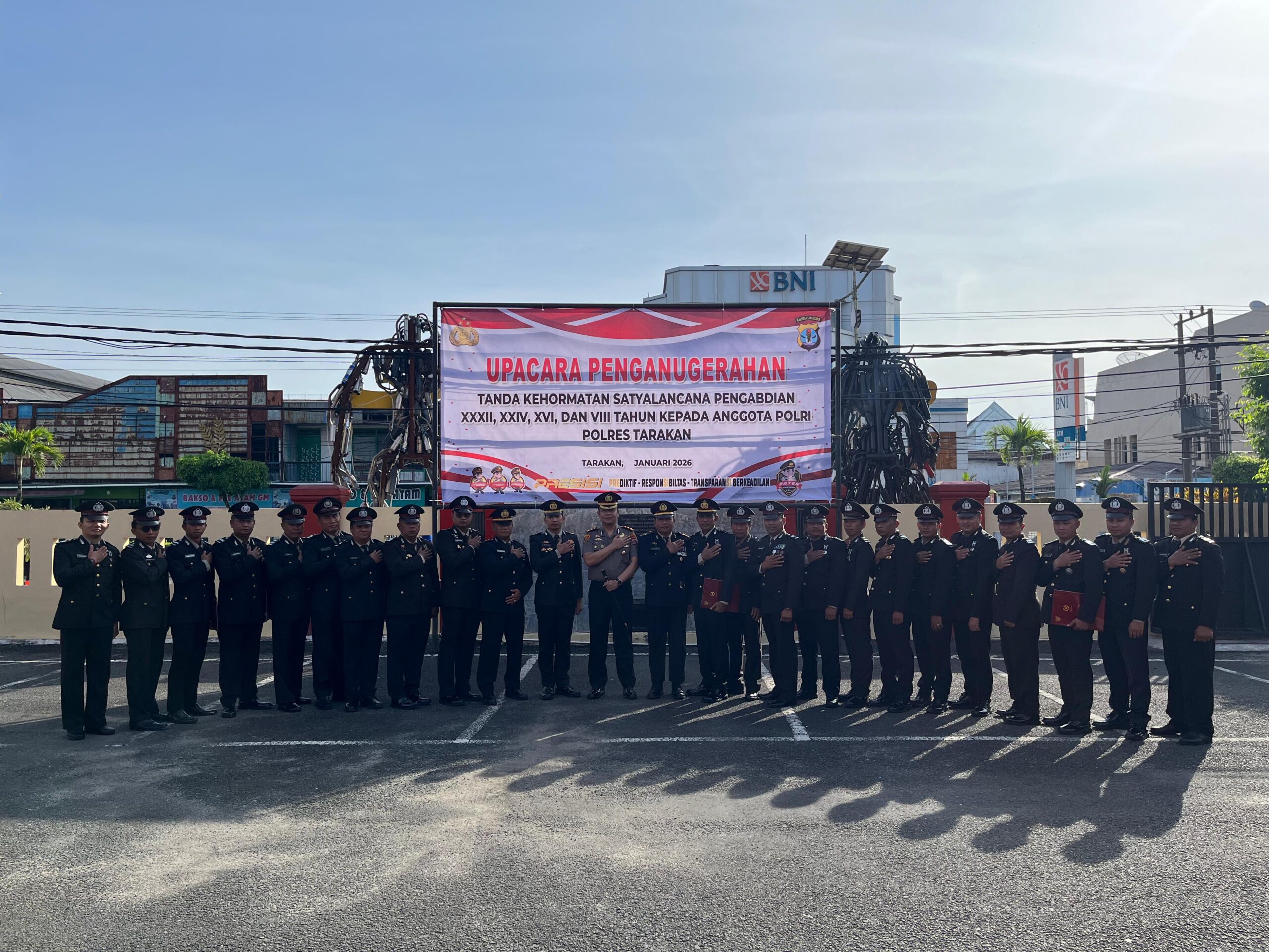 Tarakan – Kapolres Tarakan AKBP Erwin S. Manik memimpin upacara penganugerahan Satyalancana Pengabdian dan penghargaan (reward) kepada personel berprestasi, Selasa (27/1/2026) pagi. Upacara digelar secara khidmat di Lapangan Apel Mako Polres Tarakan.